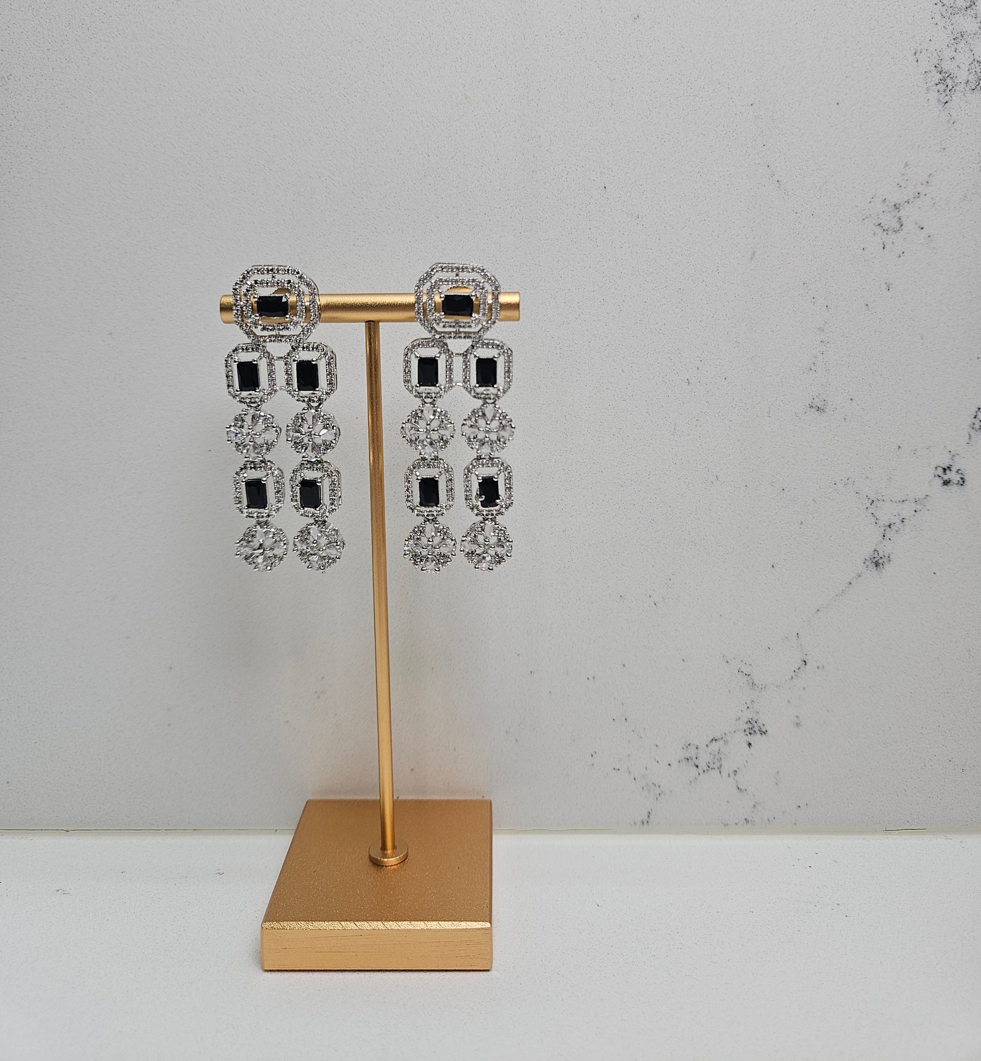 Elevate your everyday elegance with this sophisticated silver-plated AD necklace set, designed with a striking multi-layered composition. The intricate arrangement features lustrous black and crystalline clear stones that catch light beautifully, creating dimension and visual interest.