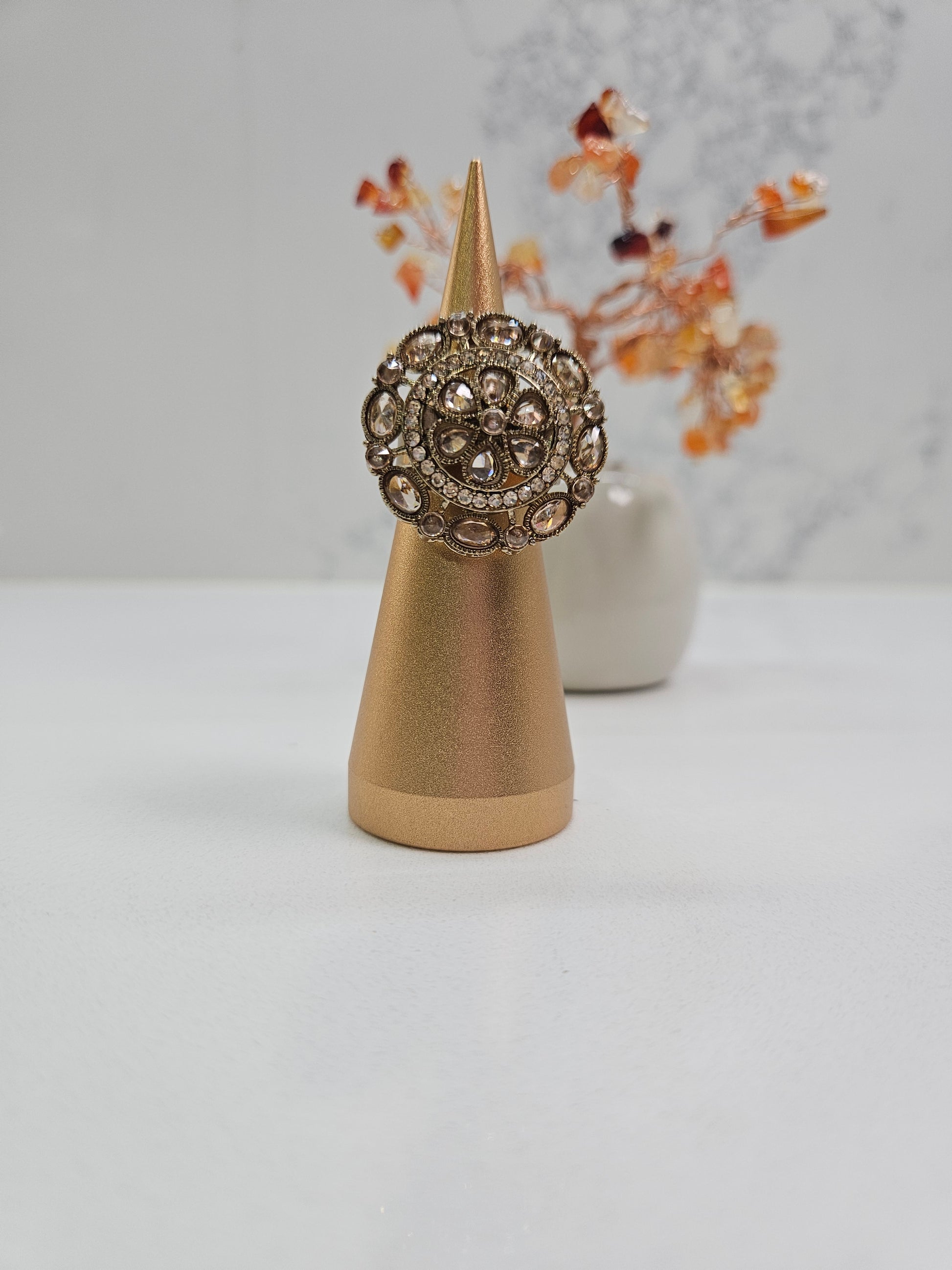 Golden Kundan Statement Ring