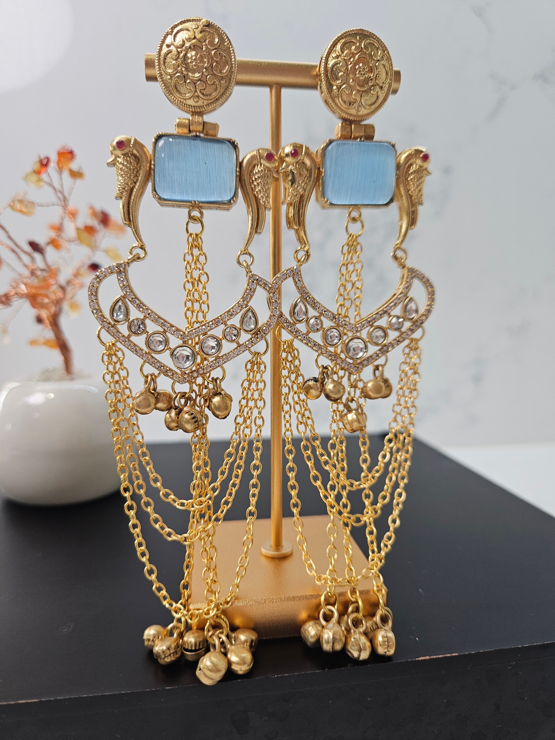 Discover the serene elegance of our Kashmiri Powder Blue Earrings, inspired by the timeless beauty of Kashmir's precious gemstones.