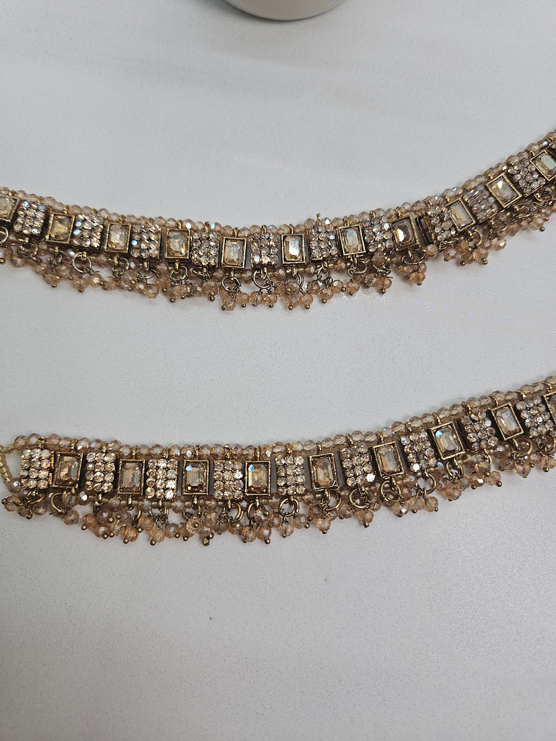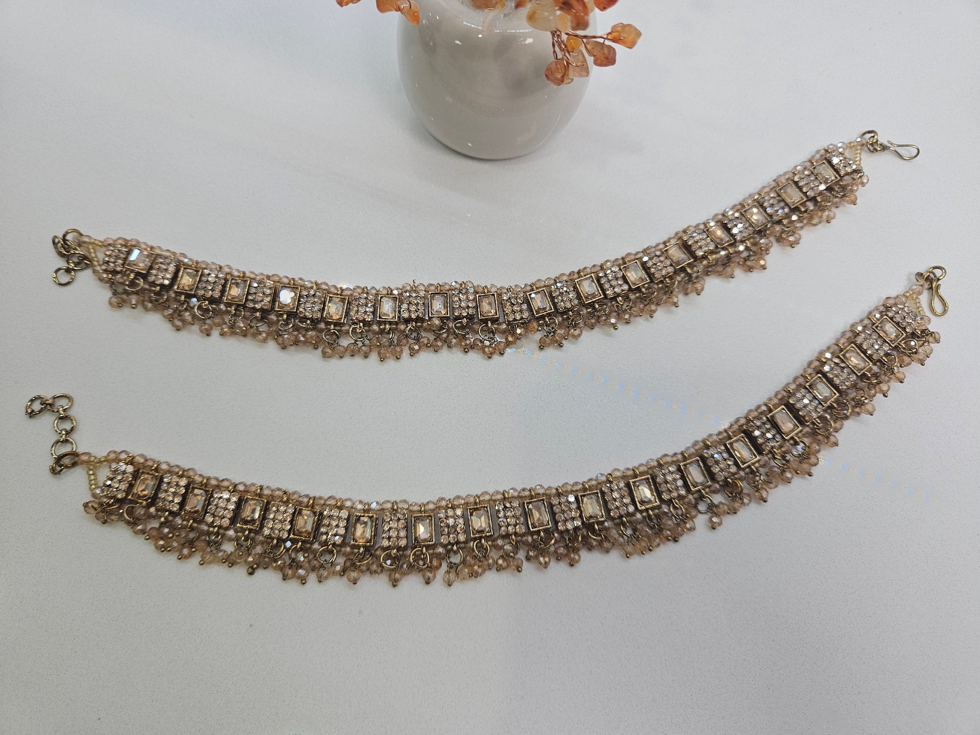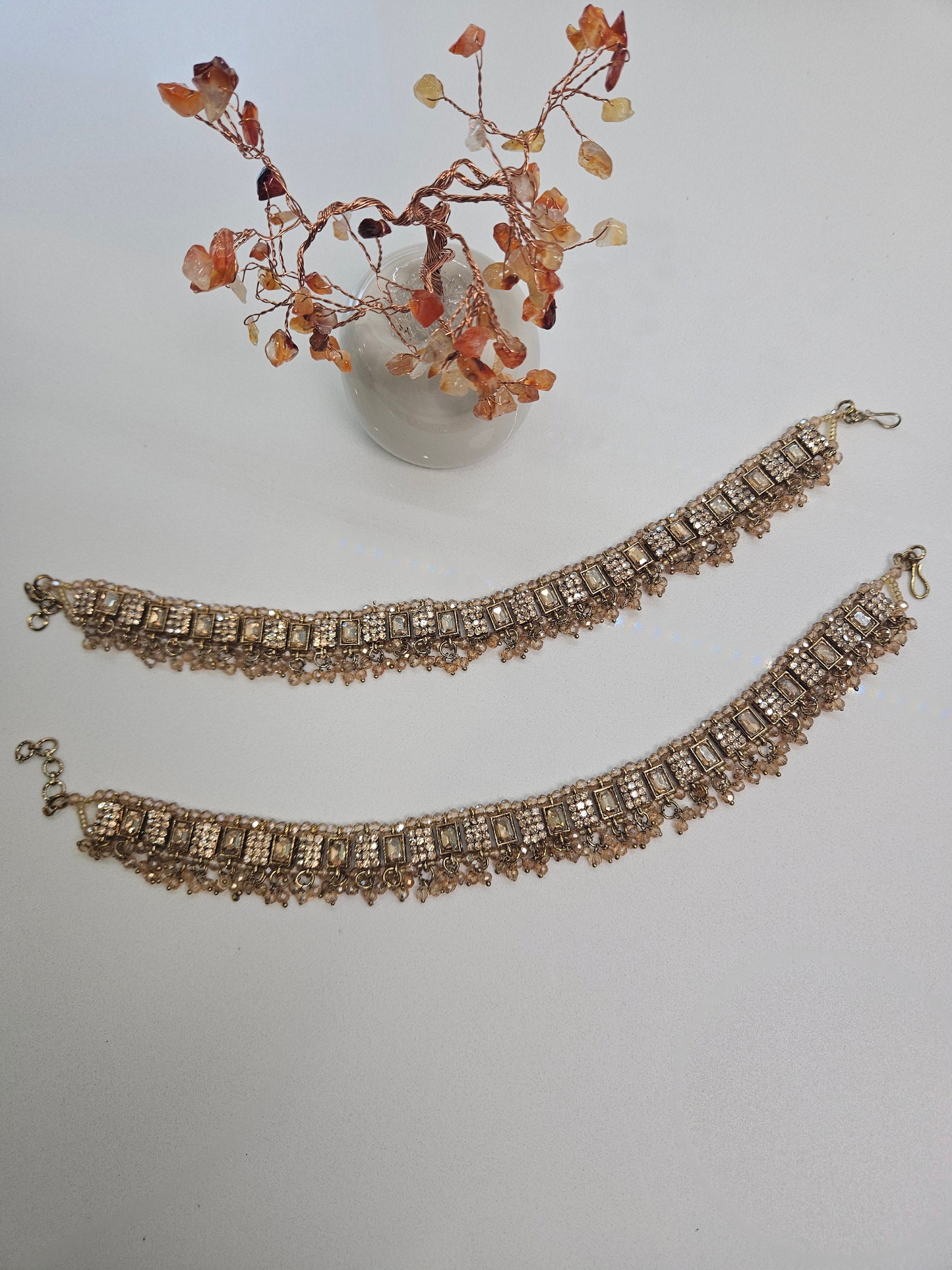 The Heer Champagne Jhanjhran represents a masterpiece of traditional kundan craftsmanship, combining centuries-old techniques with contemporary bridal aesthetics.
