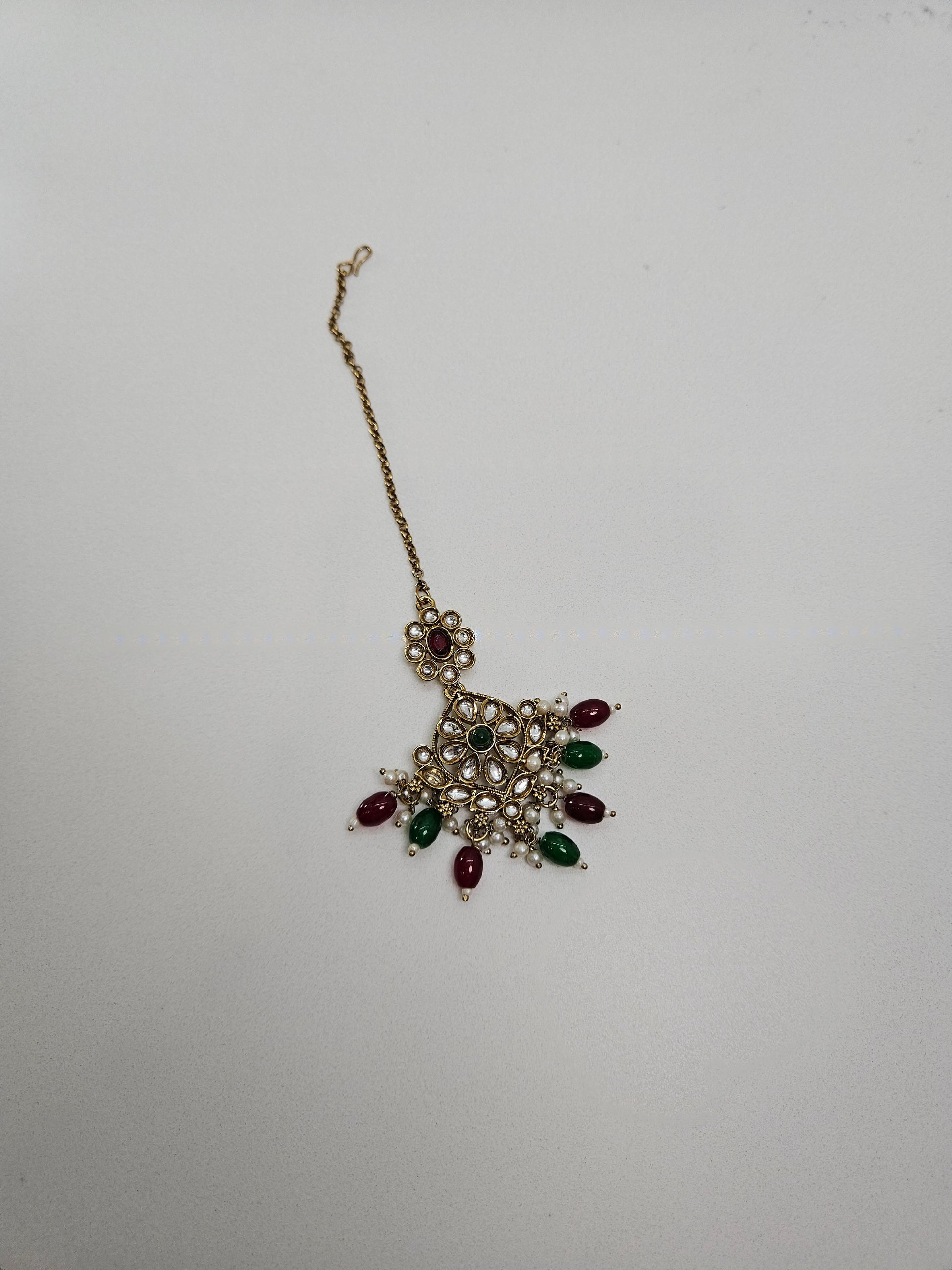 This Traditional Polki Choker Necklace exemplifies refined gemstone artistry through its carefully curated composition of pearls, rubies, and emeralds.
